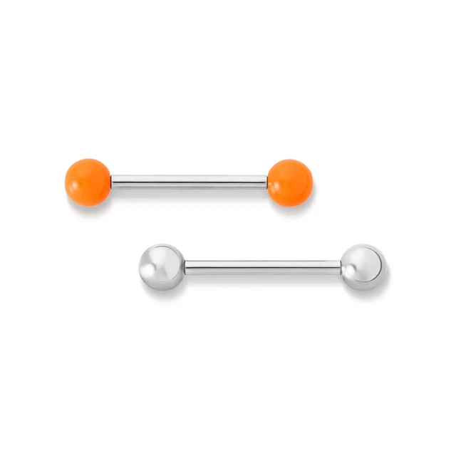 Kayla Malecc Multi-Pack Titanium Barbells with Neon Orange Ends 2 Pack - 14 Gauge
