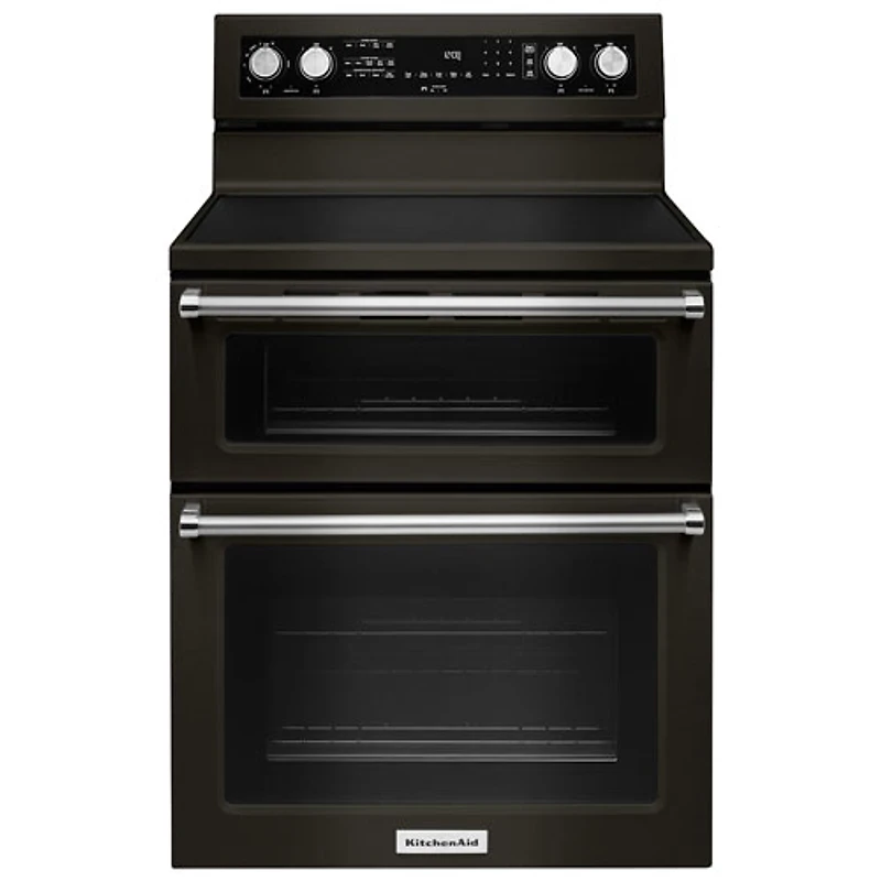 KitchenAid 30" 6.7 Cu. Ft. Double Oven 5-Element Electric Range (YKFED500EBS) - Black Stainless Steel