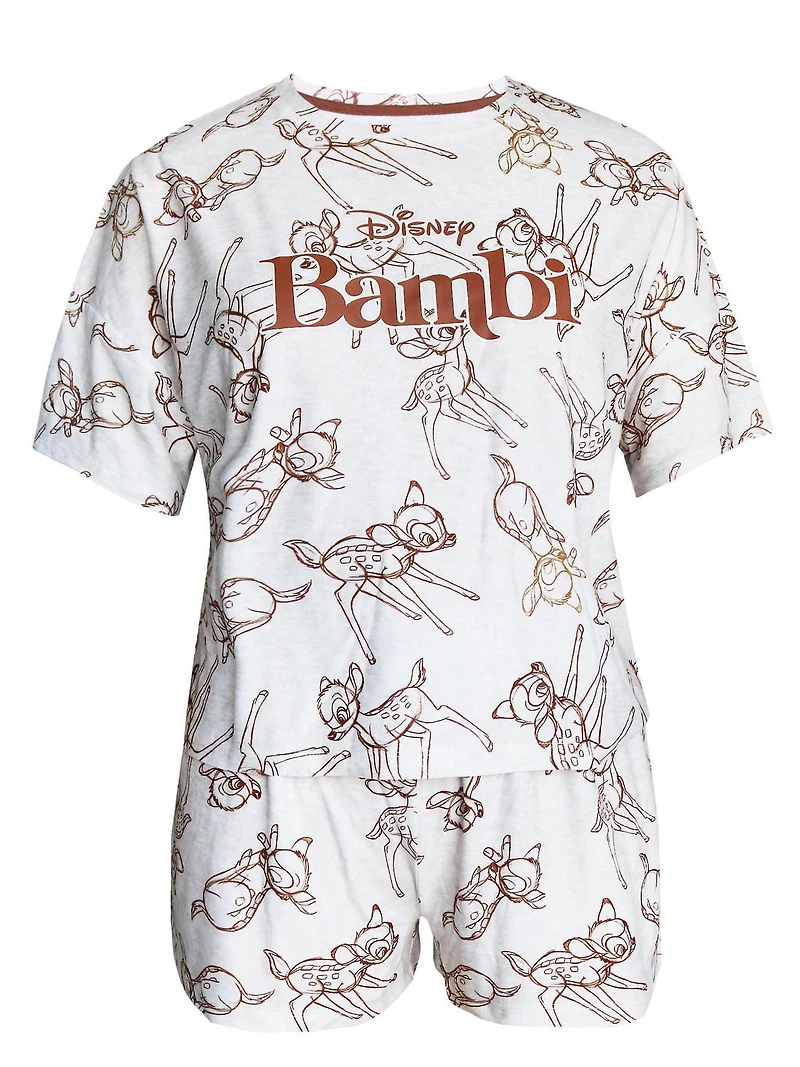 Bring woodland sweetness to your bedtime with this Bambi-themed sleep set! The soft beige T-shirt with a round neckline features a gentle Bambi graphic, paired with matching drawcord shorts that offer a relaxed fit and natural color palette. Lightweight and comfy, this 2-piece set is perfect for spring and summer nights, delivering effortless Disney-inspired charm to your sleepwear drawer.