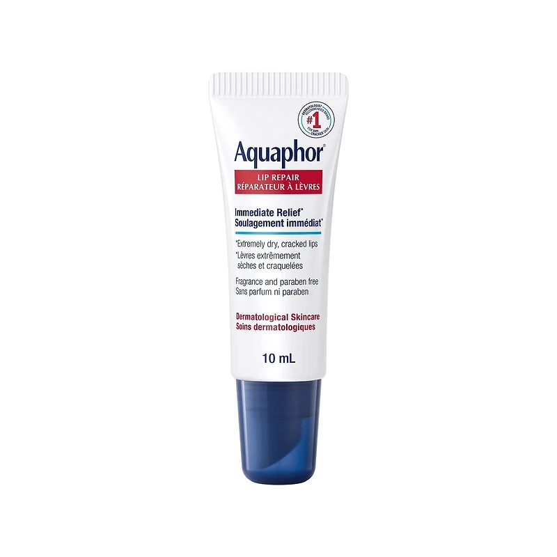 Eucerin Aquaphor Lip Repair Healing Ointment offers immediate and long-lasting relief for extremely dry, chapped, and cracked lips. Its clinically proven formula, enriched with nourishing Vitamins C, E, and Provitamin B5, works to soothe, heal, and moisturize. This ointment creates a protective barrier to seal in moisture, promoting healthier, softer-feeling lips. Designed specifically for sensitive lips, it is hypoallergenic and free from fragrances, preservatives, and parabens, making it ideal for use in harsh weather conditions.