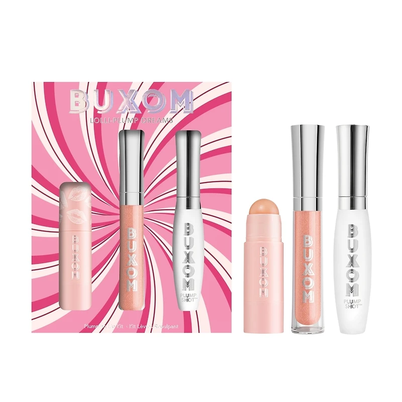 • FEATURES & BENEFITS: PLUMP SHOT PEPTIDE LIP SERUM: Enter your faux-filler era. Our clinically shown plumping lip serum is stacked with hyaluronic acid and moisturizing botanical oils for your plumpest pout ever. It’s powered by our most advanced technology to visibly plump your lips by 24%* while reducing lip lines and wrinkles by 34%*—all with an invigorating cooling sensation, without the pain of needles or burning. A range of 20 clear-to-sheer and now, NEW chromatic shimmer shades let you customize your ideal plump personality. BUXOM is 100% cruelty-free & made without parabens, mineral oil, petrolatum. Benefits: • Our most advanced plumper: visibly plumps lips by 24% • Clinical plumping results - no pain necessary • Leaves your lips with an invigorating sensation • Our OG Clear FILLER shade has a natural, soft shine finish • Shimmer tints GILT and FLUSH add a 3-D translucent sparkling shine • 12 sheer tints add a fresh pop of color to a juicy plump • 5 NEW multichrome tints glisten with hypnotic for color shifting effects for a hyper-prismatic plump BUXOM's Full-On™ Plumping Lip Polish glides on with a weightless, non-sticky feel, visibly plumping the appearance of lips. Our signature peptide complex plumps, while vitamin E provides moisture for soft, luscious lips. All with a high-shine, shimmering finish and a comfortable, tantalizing tingle. BUXOM is 100% cruelty-free & made without parabens, mineral oil, petrolatum and phthalates. Benefits: • Visibly plumps for fuller looking lips • Unique Plumping Peptide Complex and Vitamin E provide moisture for soft, smooth, luscious lips • Leaves lips with a comfortable, tantalizing tingle • Nourishes, moisturizes and softens • Mesmerizing shine in shimmer, pearlescent & glitter finishes • Delicious Sugared Vanilla scent POWER-FULL PLUMP LIP BALM IN BIG O: Power-up fuller-looking lips. Once you apply, the plush balm reacts to your pH level and blooms into your perfect natural tint for a youthful flush. Plumping Peptides paired with moisturizing Pumpkin Seed Oil simultaneously plump while leaving lips soft and supple. Four essential shades glow up every lip tone. BUXOM is 100% cruelty-free & made without parabens, mineral oil, and petrolatum. Benefits: • Unique reactor works with your individual pH level to transform lips to their most flattering custom shade • Visibly plumps for fuller-looking lips • Silky texture for a comfortable application • Wear it alone or layer with your favorite BUXOM lip products
