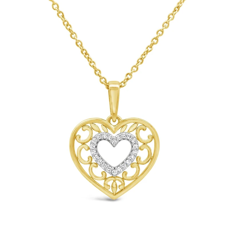 Loving Hearts Diamond Filigree Heart Pendant in 10K Yellow Gold