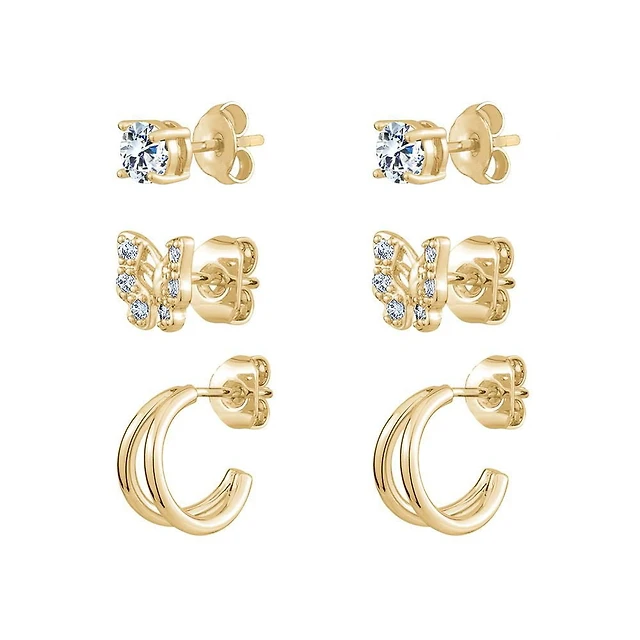 Gold Plated Sterling Silver Cubic Zirconia Classic Trio Earrings