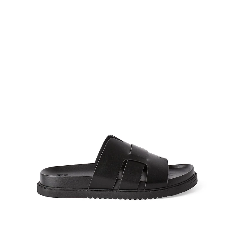 Madden NYC men’s casual sandals offer a modern take on an everyday warm-weather staple. They’re composed of a smooth faux leather upper and a rubber outsole for traction. These sandals feature an open-toe design for a breathable feel, a slip-on style for quick on and off, and a wide strap for a structured, polished look. Simple and versatile, these sandals pair effortlessly with tailored shorts and polos.