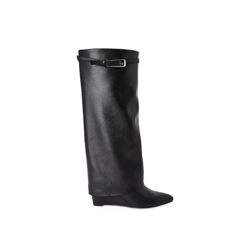 Take your fashion to new heights with Madden NYC women's fold-over boots. The faux leather upper gives off a sleek and stylish look, while the rubber outsole provides traction. Designed with a pointed toe, side zipper closure, buckle detail, fold-over detail, and platform heel, these boots offer a 2-in-1 style for a variety of looks. They’re perfect for pairing with skinny jeans, skirts, flowy dresses, and more for an edgy touch.