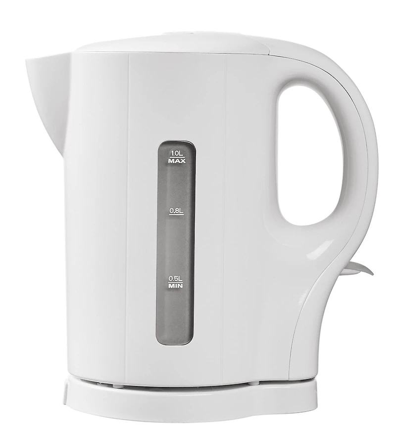 Experience simplicity and safety with Mainstays Cordless Electric Kettle. Just add water, flip the switch, and enjoy boiling water in seconds. Equipped with an on/off switch and red-light indicator, you'll always know when it's in use. The automatic shut-off function activates once the water starts boiling, while Boil Dry Protection ensures the kettle powers down if accidentally turned on without water. A clear water level window lets you see exactly how much you’re filling, making every use clean and precise. Now that’s simple done smart.