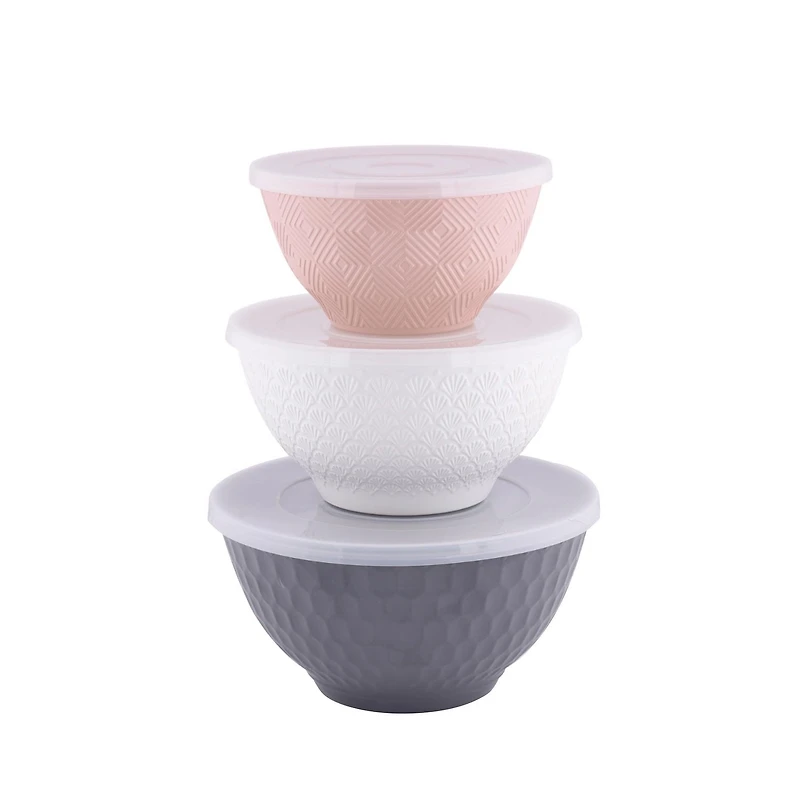 Mainstays 6-Piece Eco-Friendly Plastic Round Serving Bowl Set, Gray/White/Pink