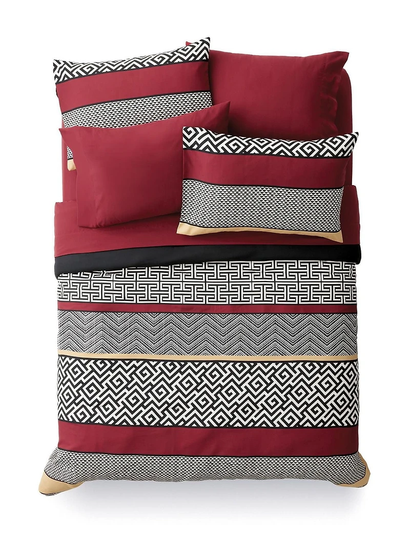 The Mainstays Greek Bed-in-a-Bag provides an elegant and luxurious update for your bedroom. This comforter features a striped design with geometric motifs to create an updated traditional look. The 2 matching shams repeat a similar geometric and striped pattern that pairs perfectly with the comforter. A solid flat sheet, fitted sheet and 2 pillowcases are also included, providing elegant finishing touches. Machine washable for easy care, this comforter set brings a refined traditional allure to your bedroom decor.