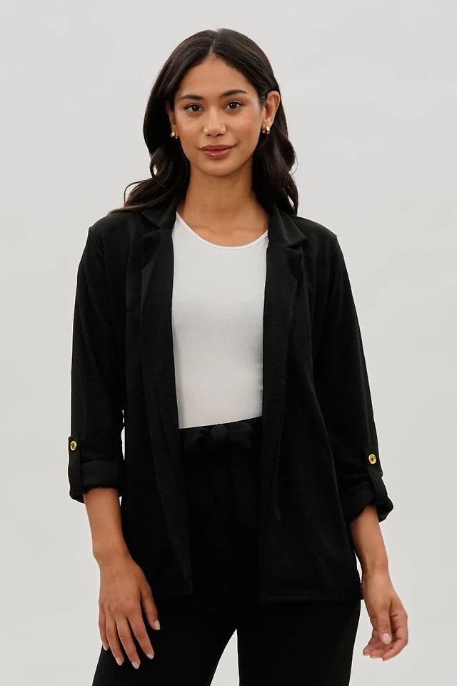 Majora Roll Up Sleeve Two Button Blazer - Black