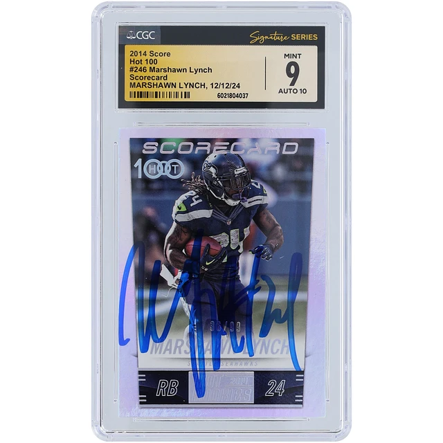 Marshawn Lynch Seattle Seahawks Autographed 2014 Panini Score Hot 100 Scorecard #246 #/99 CGC Fanatics Witnessed Authenticated 9/10 Card