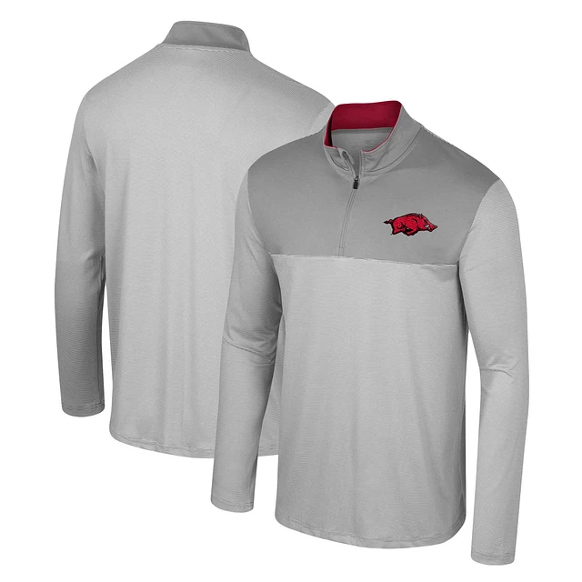 Men's Colosseum Gray Arkansas Razorbacks Tuck Quarter-Zip Top