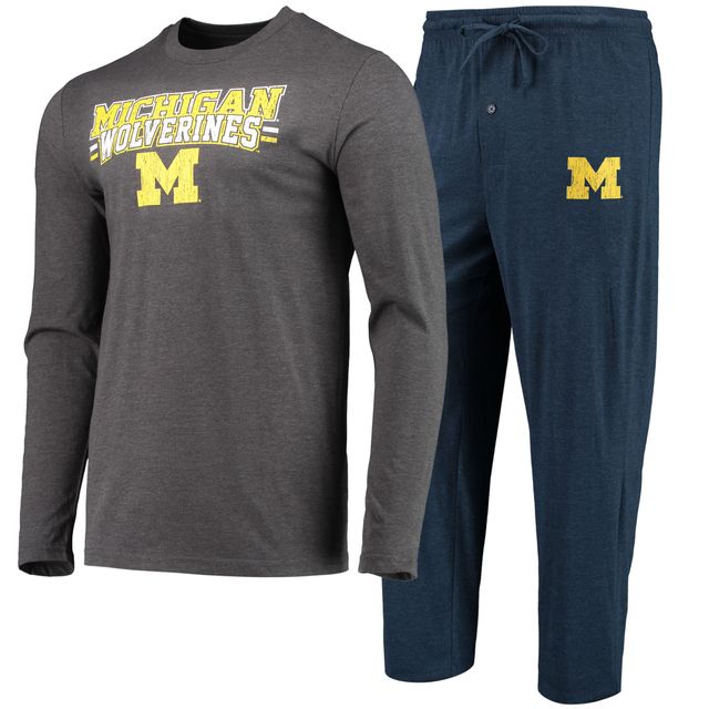 Men's Concepts Sport Navy/Heathered Charcoal Michigan Wolverines Meter Long Sleeve T-Shirt & Pants Sleep Set
