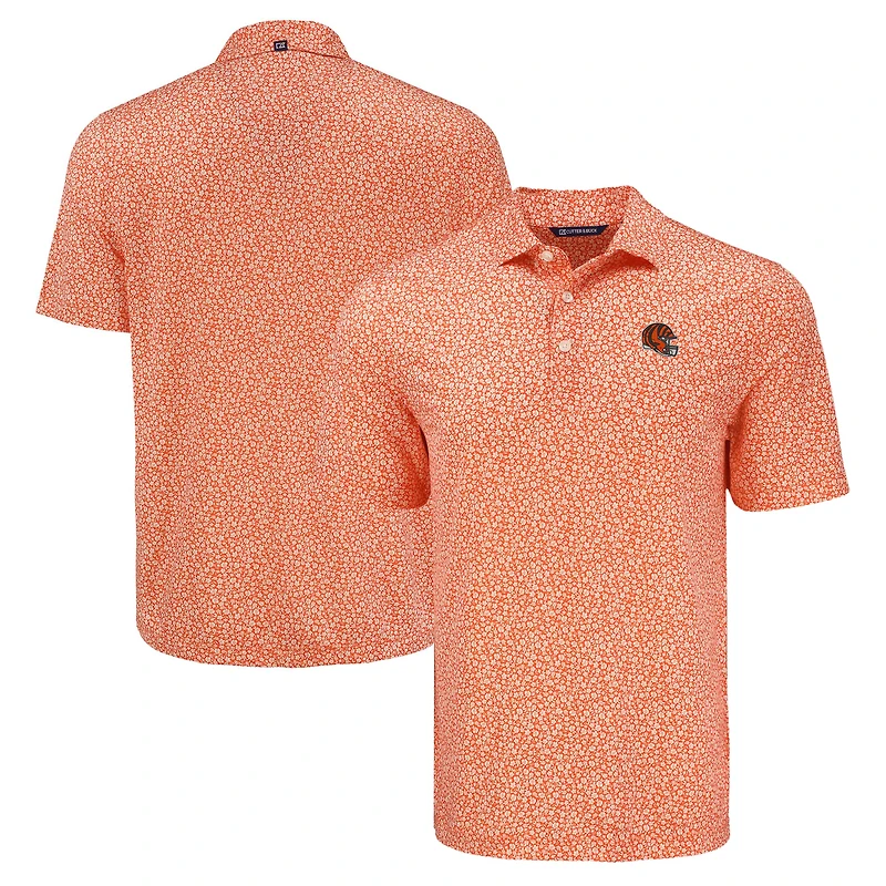 Men's Cutter & Buck Orange Cincinnati Bengals Pike Eco Flora Print Polo