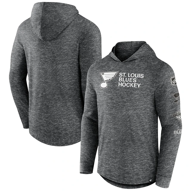 Men's Fanatics Heather Charcoal St. Louis Blues Stacked Long Sleeve Hoodie T-Shirt