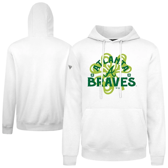Men's Levelwear White Atlanta Braves St. Patrick's Day Podium Shamrock Pullover Hoodie