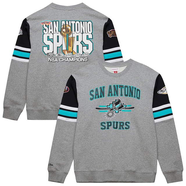 Men's Mitchell & Ness Heather Gray San Antonio Spurs Hardwood Classics All Over 4.0 Pullover Sweatshirt