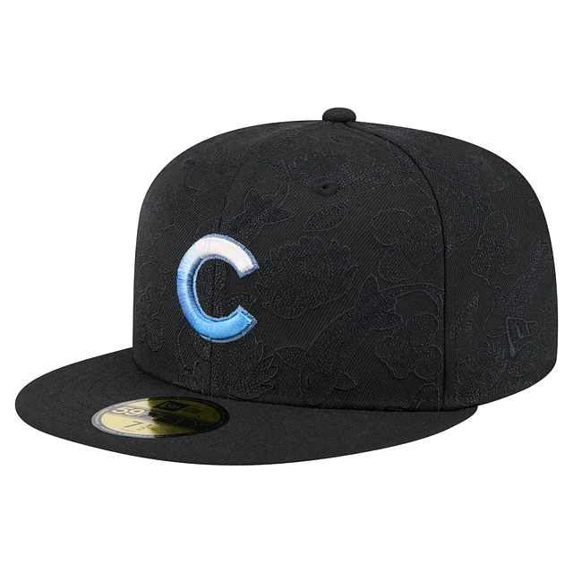 Men's New Era Black Chicago Cubs Tonal Koi 59FIFTY Fitted Hat