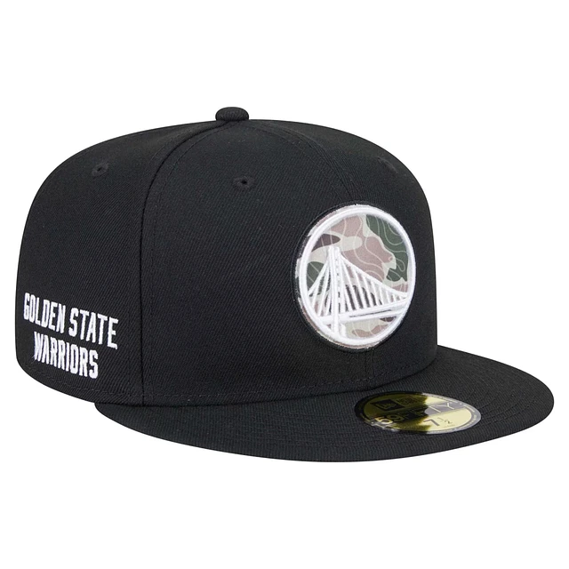 Men's New Era Black Golden State Warriors Camo Print UV 59FIFTY Fitted Hat