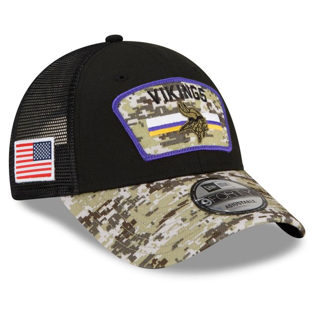 Men's New Era Black/Camo Minnesota Vikings 2021 Salute To Service - Trucker 9FORTY Snapback Adjustable Hat
