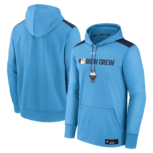 Men's Nike Light Blue Milwaukee Brewers Authentic Collection City Connect Therma Pullover Hoodie