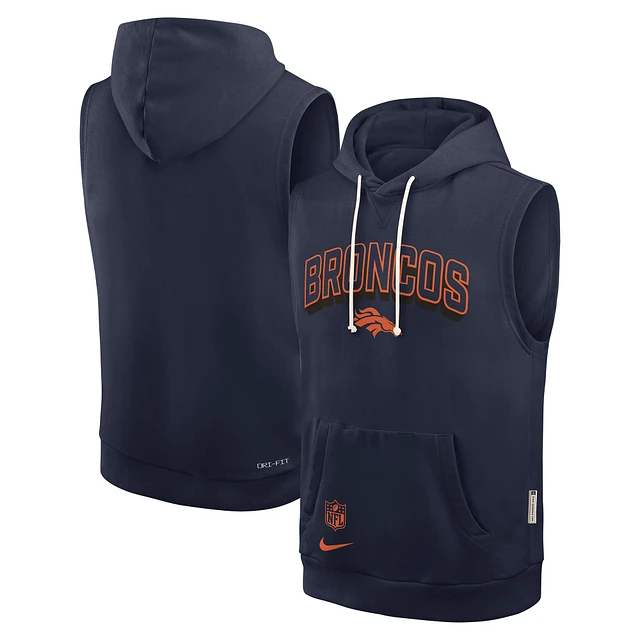 Men's Nike Navy Denver Broncos Sideline Performance Sleeveless Pullover Hoodie