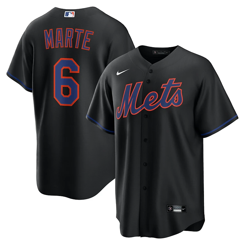 Bring home the excitement of the game with this Starling Marte New York Mets Alternate Replica Player Jersey from Nike. This replica jersey features Starling Marte's name and number in sublimated twill, letting you rep your favorite player in style. With a classic button-front design and a comfortable standard fit, it's perfect for wearing at the ballpark or anywhere you want to show your New York Mets pride.