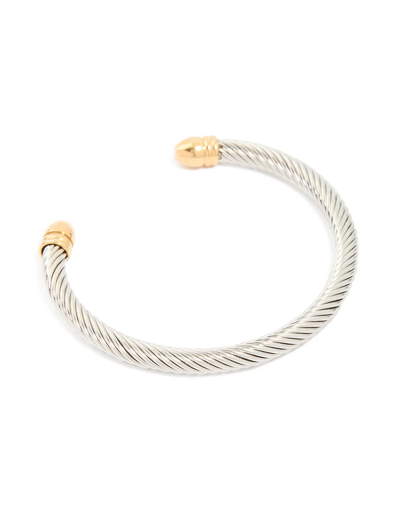Mens Waterproof Stainless Steel Large Twisted Wire Cuff