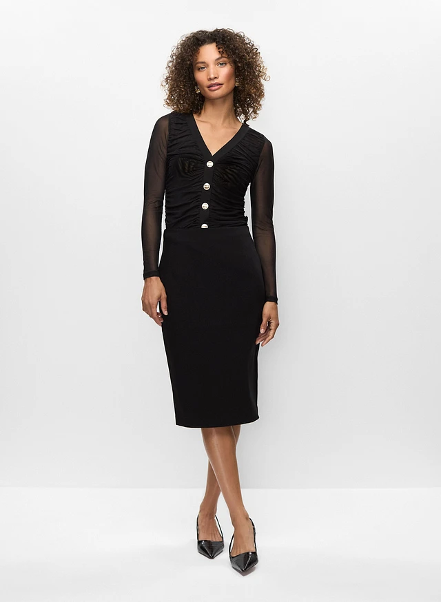 Mesh Long Sleeve Top & Rhinestone Detail Skirt