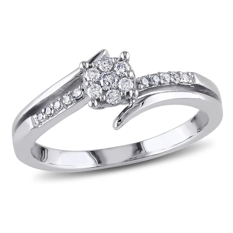 Miabella 1/5 Carat T.W. Diamond 10 K White Gold Bypass Floral Engagement Ring