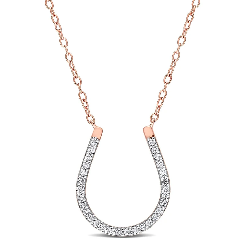 Miabella 1/6 Carat T.W. Diamond Rose Rhodium Plated Sterling Silver Horseshoe Necklace