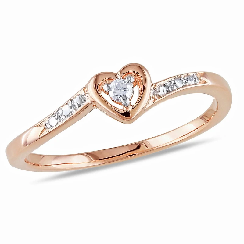 This Miabella Diamond Accent Heart-Shaped Promise Ring is an ideal choice for the girl in your life. It is versatile and can be worn with anything. Designed with a heart-shaped center that is prong set with a single round diamond (G-H, I2-I3), the pink rhodium plated sterling silver promise ring is beautifully detailed with diamond illusions along each side of the slender band for an extra sparkle.