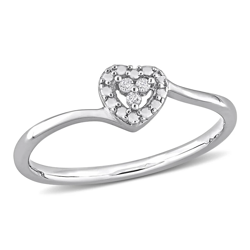 Melt her heart with this enchanting Miabella Diamond Accent Heart Bypass Promise Ring. Crafted in lustrous sterling silver, it features three round-cut, pave-set diamond accents (H-I, I3) studded in a heart halo design on the thin band. Polished to a brilliant shine, the flickering diamonds are sure to melt her heart. Make her feel special by gifting this timeless and stunning promise ring.Miabella Jewellery: The perfect piece of jewellery is special and stunning, accompanying you for life. With over 30 years of experience in creating fine jewellery, Miabella has what you're looking for to mark a special occasion with something that sparkles. Miabella — Harmony in jewellery. Life is a symphony, celebrate it!