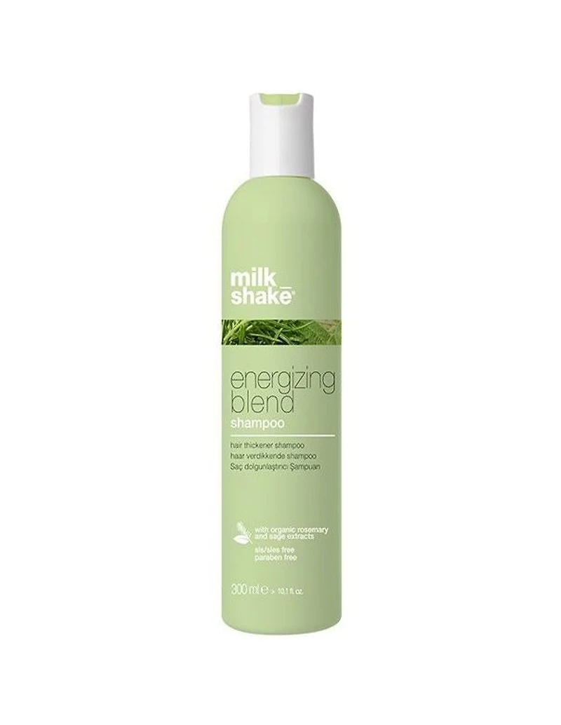 Milkshake Energizing Blend Shampoo - 300ml Milkshake energizing blend shampoo is for fine, thinning and fragile hair, cleanses deeply but gently while respecting the scalp and hair. The natural powers in organic rosemary, sage and fioravanti balm extract purifies hair while stimulating the scalp’s micro-circulation to create an optimal environment for new hair growth. The blend of botanical extracts and special conditioners invigorates the hair stem and gives softness. Panthenol provides more density to the hair, and essential oils and eucalyptus instil a pleasant energizing feeling, leaving the scalp refreshed. Use Apply on wet scalp and hair, gently massage applying a slight pressure using the fingertips in a circular motion to enhance the micro-circulation. Rinse and proceed with the most suitable energizing treatment.