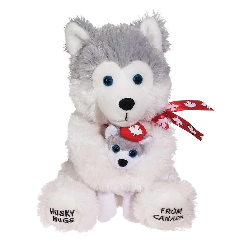 Dog sledding is a Canadian staple and with this husky plush hugging a baby husky you can take them with you wherever you go! Husky Hugs from Canada!