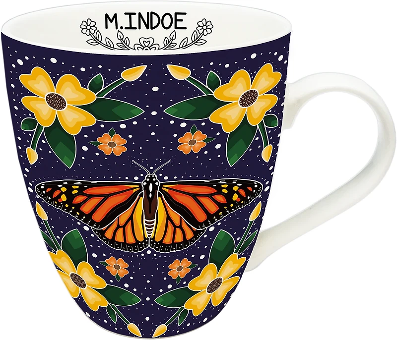 Monarch Butterfly Signature Mug by artist Marissa Indoe - AnishinaabeOur Signature Mugs feature authentic indigenous art with the artist’s signature on the inside. They are 18 oz, made of fine bone china and are microwave and dishwasher safe.