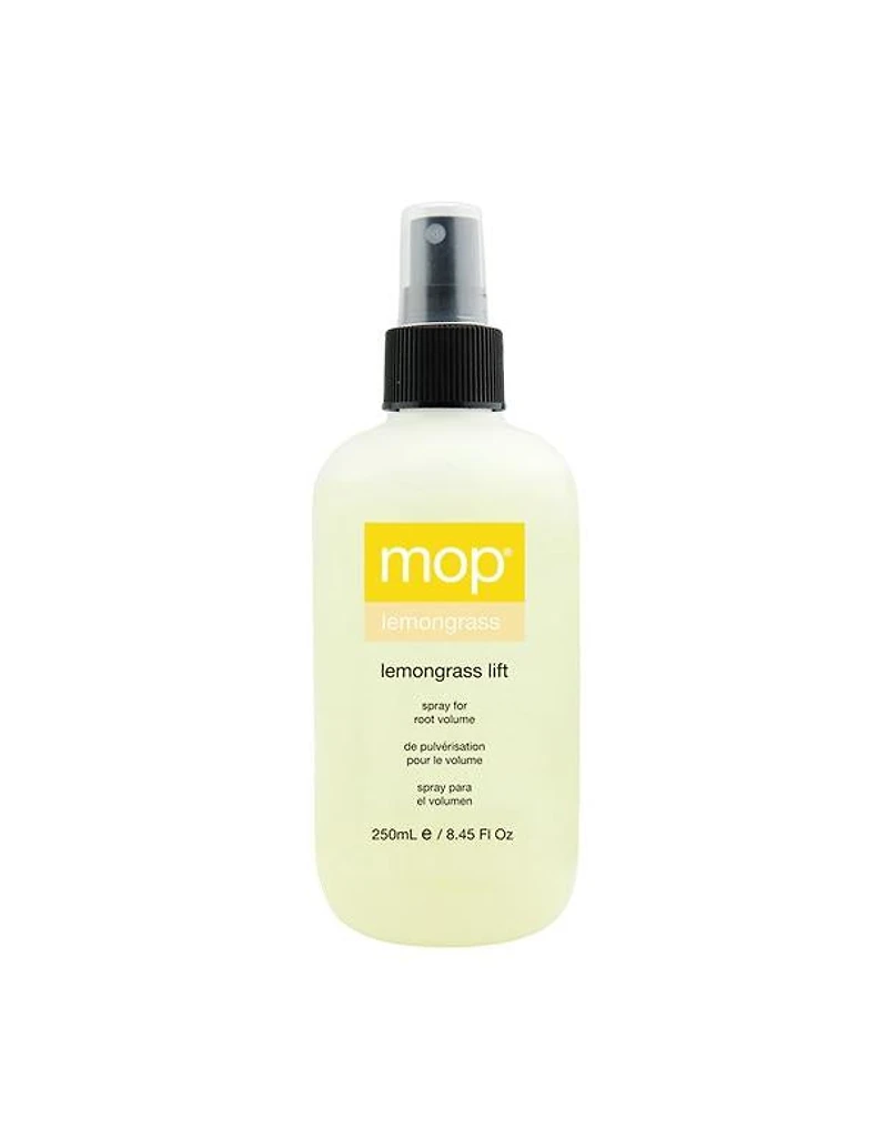 MOP Citronnelle Lift - 250 ml Pour cheveux fins et plats. La citronnelle, le Ginkgo Biloba et les protéines de blé hydrolysées agissent ensemble pour créer un volume incroyable et soulever à la racine sans les conséquences du coiffage à chaud. Pour le volume des racines et la protection contre la chaleur. Les protéines de blé offrent une protection thermique, du volume et une magie de coiffage. 100 % végan. Non testé sur les animaux. Sans parabènes ni chlorure de sodium ajoutés. Infusé de fruits, de légumes et de plantes. Utiliser Appliquez une brume légère à la racine sur cheveux humides, puis coiffez. Peut être utilisé en association avec d'autres produits coiffants.