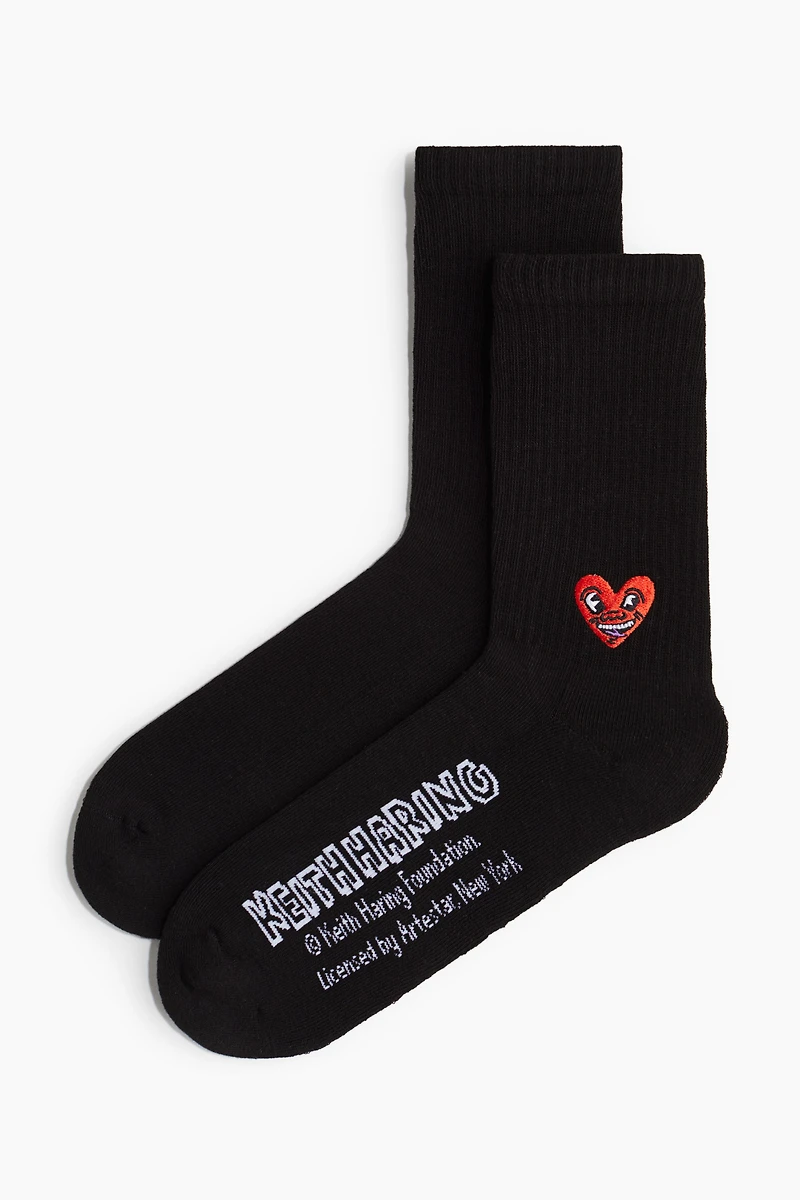 Fine-knit socks in a soft cotton blend with a motif. High, ribbed leg section.
