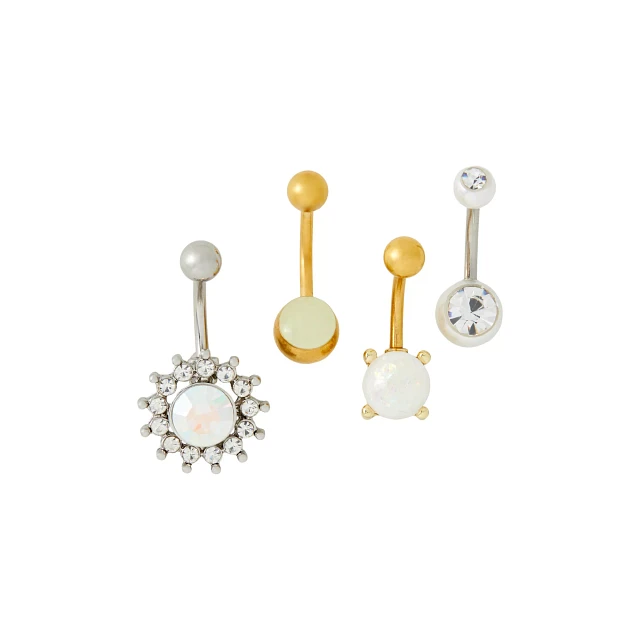 Multi-Pack Assorted CZ Faux Opal and Glow in the Dark Belly Rings 4 Pack - 14 Gauge