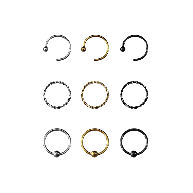 Multi-Pack Assorted Style Nose Rings 9 Pack - 20 Gauge
