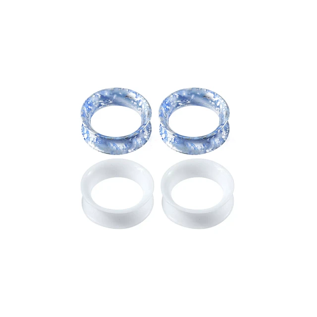 Multi-Pack Blue and White Splatter Silicone Tunnels - 2 Pair