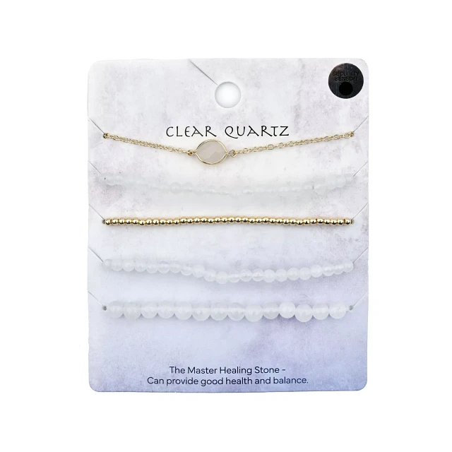 Multi-Pack Clear Quartz Beaded Bracelets - 5 Pack
