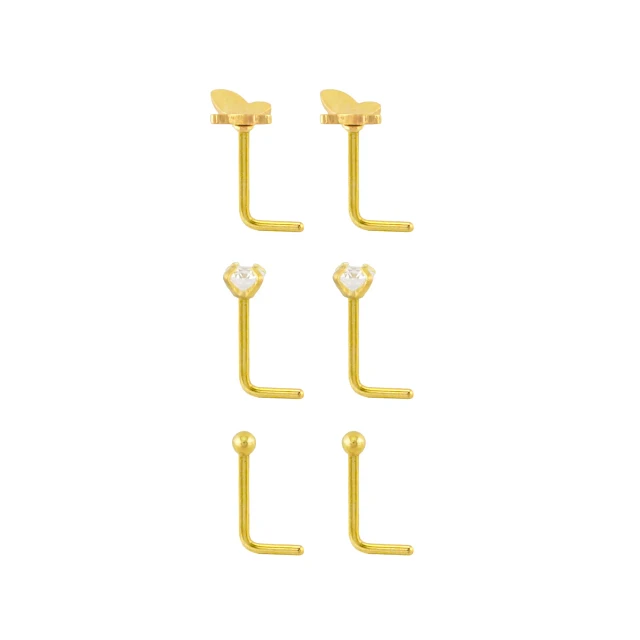 Multi-Pack Bow Heart and Star L-Bend Nose Pins 6 Pack - 20 Gauge