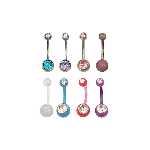 Multi-Pack CZ Assorted Belly Rings 8 Pack - 14 Gauge