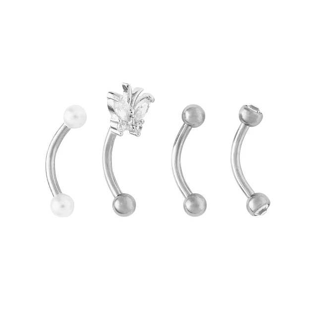 Multi-Pack CZ Butterfly and Pearl-Effect Titanium Curved Barbells 4 Pack - 16 Gauge