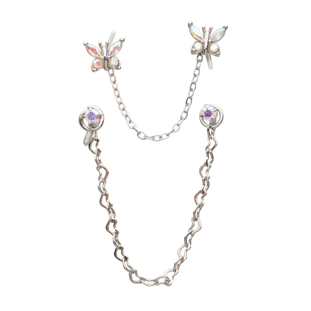 Multi-Pack CZ Butterfly Nose Chains 2 Pack - 18 Gauge