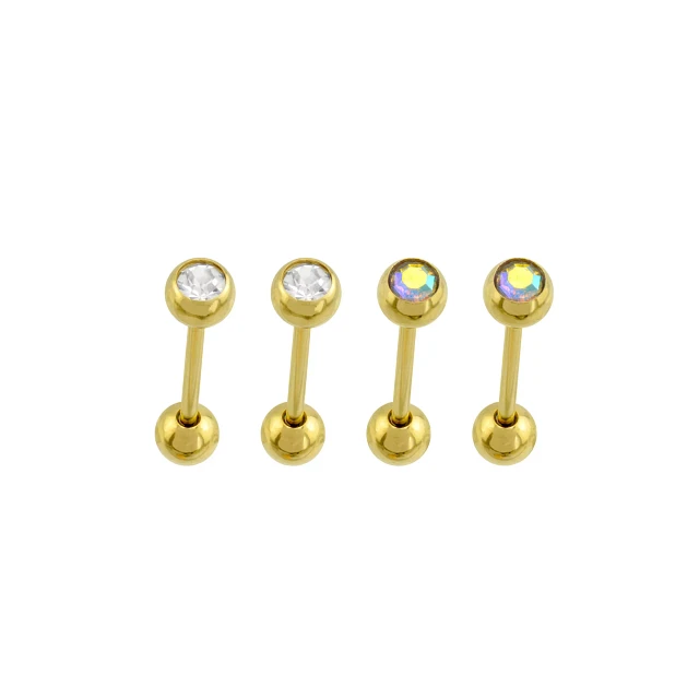 Multi-Pack Goldplated Tongue Barbells 4 Pack - 14 Gauge