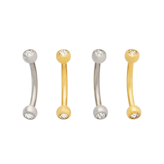 Multi-Pack CZ Goldtone and Silvertone Curved Barbells 4 Pack - 16 Gauge