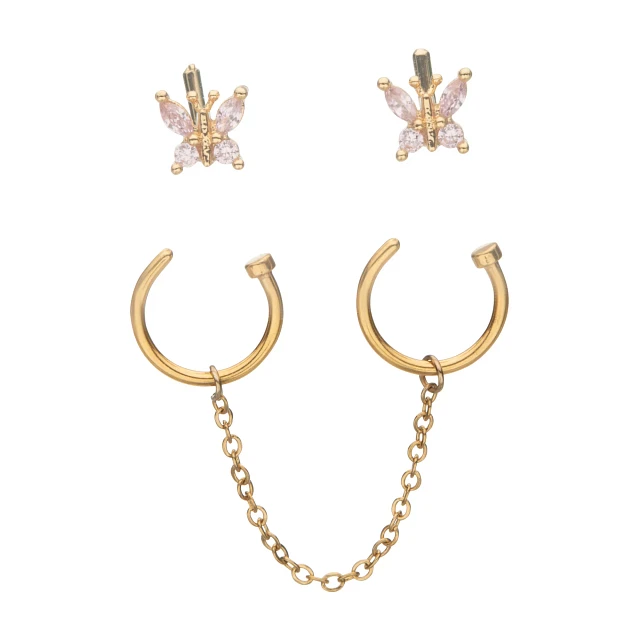 Multi-Pack CZ Goldtone Butterfly L-Bend and Horseshoe Nose Rings 4 Pack - 18 Gauge