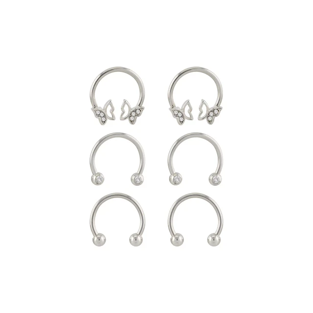 Multi-Pack CZ Rhinestone Butterfly Horseshoe Rings 6 Pack - 16 Gauge