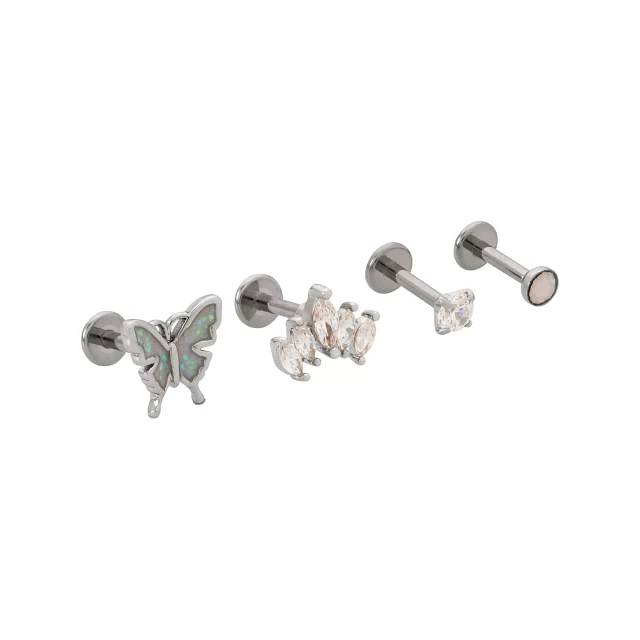 Multi-Pack CZ Slab and Butterfly Titanium Cartilage Barbells 4 Pack - 16 Gauge